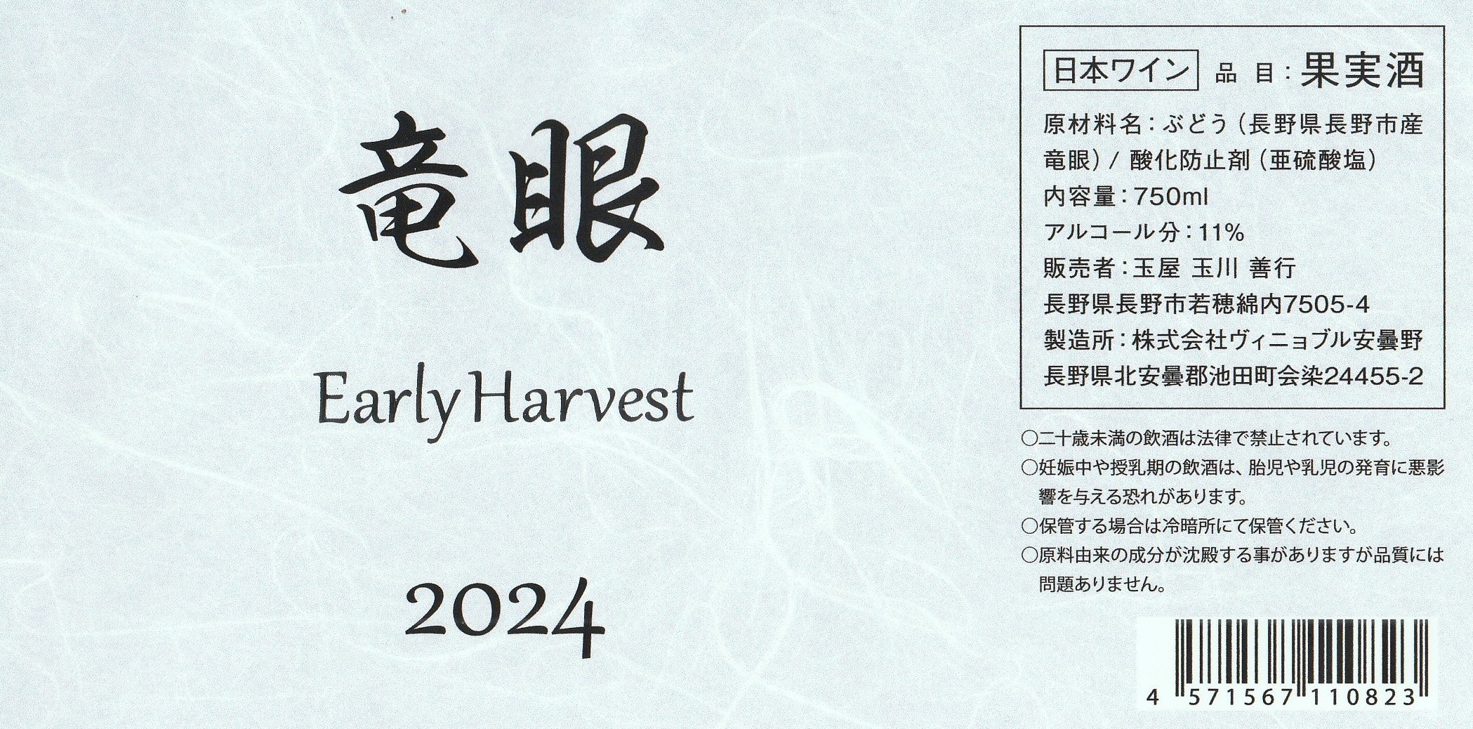 信州の魅力が詰まった「竜眼 Early Harvest」は、早期収穫された竜眼から作られた高品質なワインです。