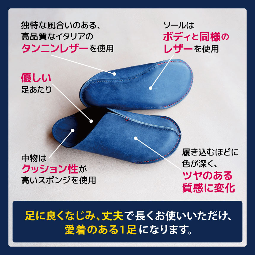 タンニンレザーのルームシューズ【コバルトブルー】Mサイズ ( 2…