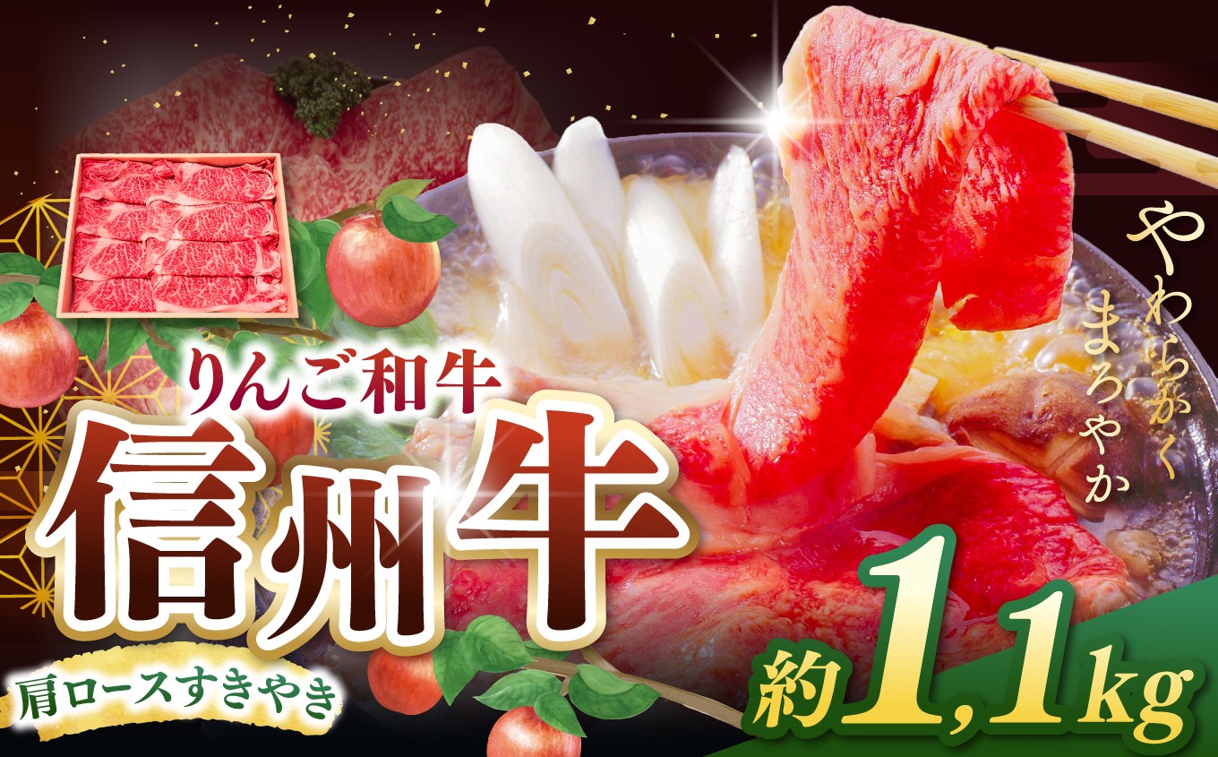 りんご和牛・信州牛 肩ロースすき焼き 約1.1kg(約550g×2パック…