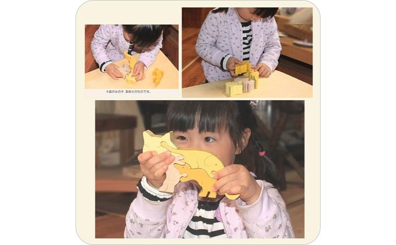 | 容量 | ウサギ、イヌ、ゾウのピースを組み立てると1匹の猫になる知育パズルが入っています。おもちゃの材質はブナ材 日本製 サイズ:長さ165mm×高さ100mm×厚み30mm |