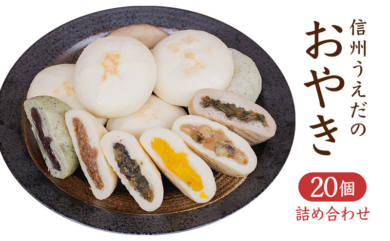 おやき 長野 信州 うえだのおやき 20ケ入 詰め合わせ セット よもぎ かぼちゃ そば 野沢菜 切干大根 なす 食べ比べ 冷凍食品 レンジ 調理 レンジでチン スイーツ おやつ 菓子 朝ごはん 朝食 軽食 取り寄せ 冷凍 長野県 上田市 上田 [№5312-0149]
