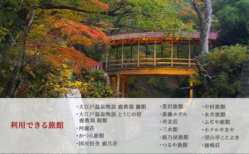 『健康の郷』として知られる『鹿教湯温泉』の個性豊かな旅館(鹿教湯温泉旅館協同組合加盟の旅館)で利用できる宿泊補助券をお送りします。