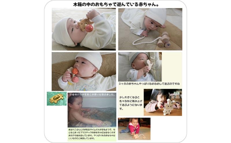 ▼桐の木箱の中には、銀河工房の人気赤ちゃんおもちゃが5種類入っています。
