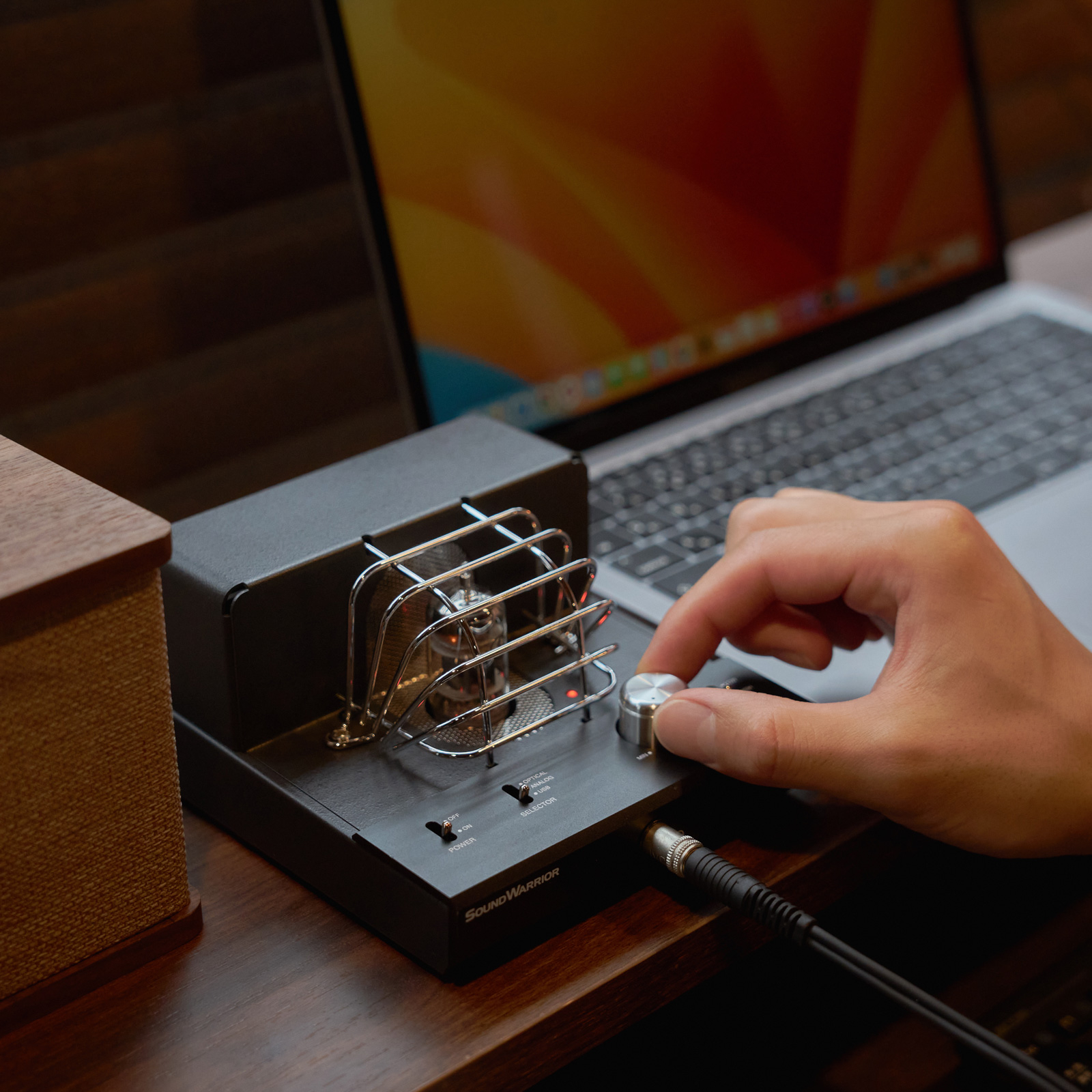 筐体内でスペースを取らずにパワフルな駆動力をもたらすD級アンプと、デジタルアンプだけでは表現できないアナログオーディオの感性を持つ 真空管を組み合わせることで、コンパクトでありながら音楽性に富んだハイブリッドアンプ「SWL-T01」が生まれました。
