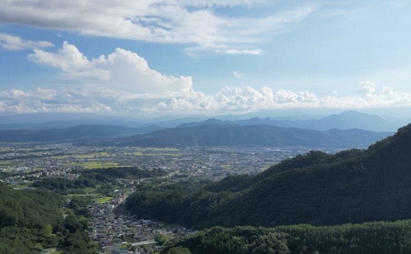 周囲を山に囲まれた盆地で、水はけが良く果樹栽培が盛んな地域でもあります。