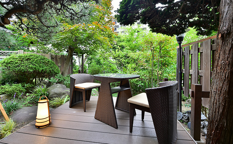 庭園付きのお部屋では、木の葉が揺れ、風が吹き抜ける自然音を感じることができます。自然音は「1/fゆらぎ」と呼ばれ、リラクゼーションの効果があります。