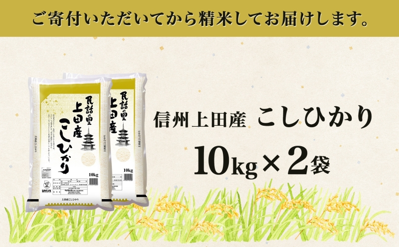 「信州 上田産 こしひかり 10kg×2袋 計20kg」をお届けします。