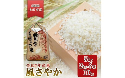 米 令和7年産 長野 風さやか 内容量選べる 5kg 2kg×3個 10kg 小分け お米 白米 精米 オリジナル ブランド米 かぜさやか 信州 長野県 上田市 上田 [№5312-1039-01]