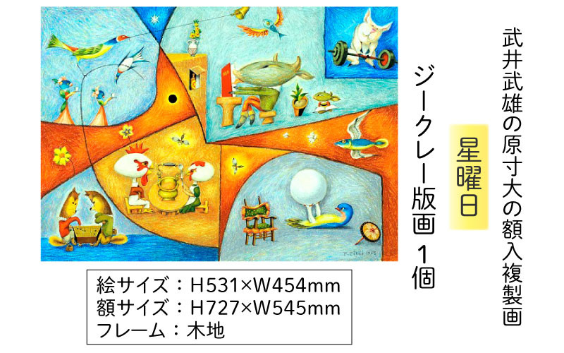 チョイスPayポイントと交換できる品 独特のレトロで心に染みる世界を堪能できます 武井武雄の原寸大の額入複製画【星曜日】