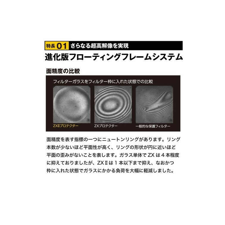 そして2021年、「フローティングフレームシステム」を改良し、さらなる超高解像を実現した、究極のレンズ保護フィルター「ZXIIプロテクター」が誕生しました。また新開発「ZR01コート」を採用することで、面反射0.1%の超低反射も実現。