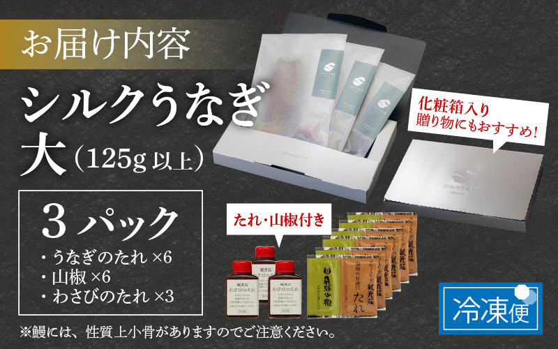 シルクうなぎ蒲焼真空パック 大(125g以上)×3パック【うなぎ …