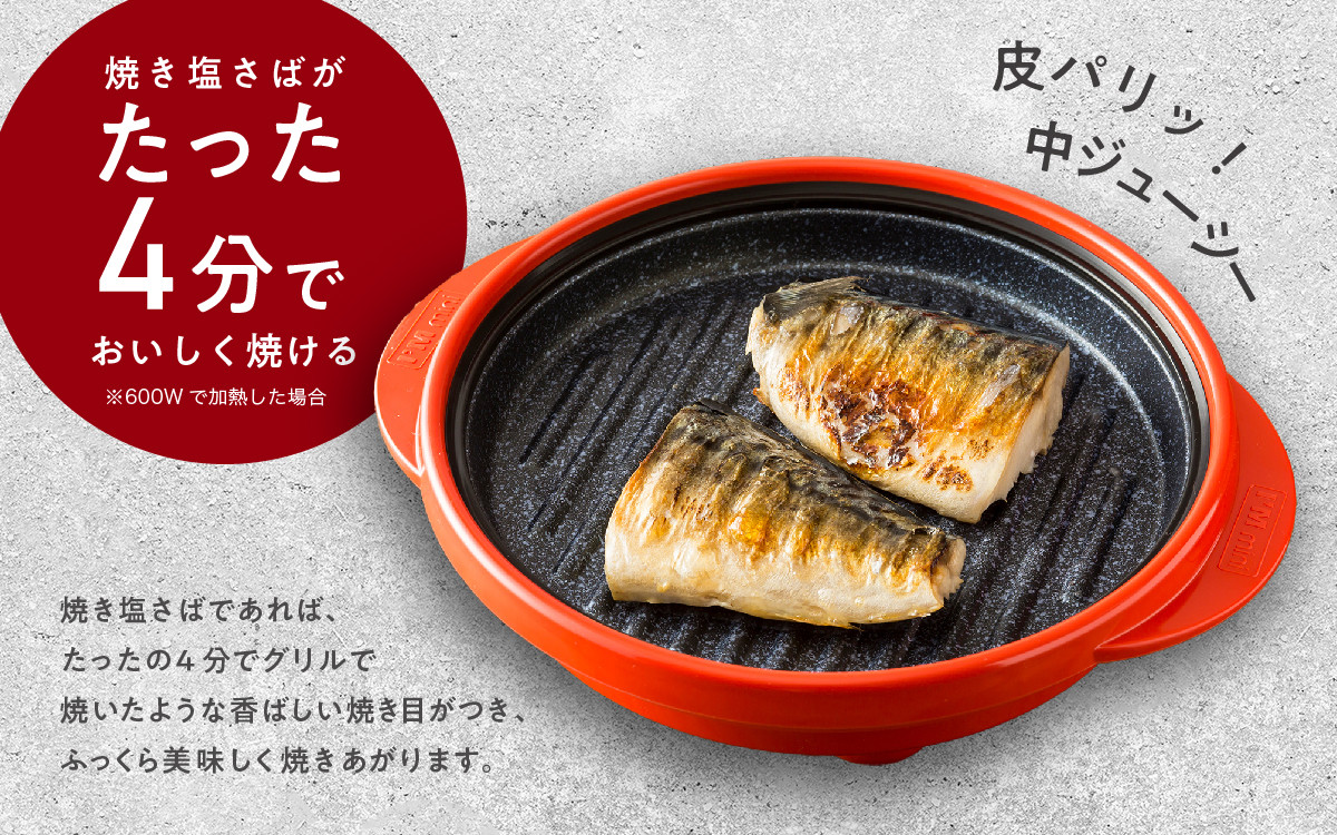 フタをして電子レンジで加熱するだけで、グリルを使わず魚を焼けてお手入れも簡単。さらに、焼くだけではなく、煮る、蒸す、炊く、茹でる、炒めるがこの一台でできちゃう優れもの!