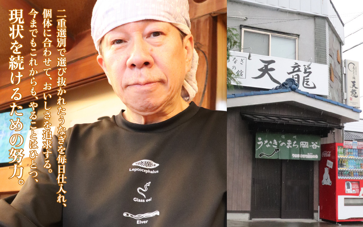 捌きは関東風、焼きは関西風、たれは甘めの岡谷流
