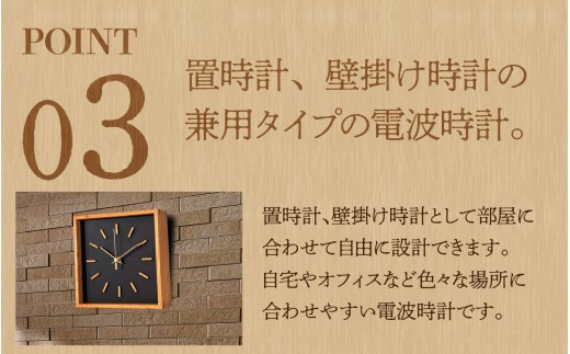 自宅やオフィスなど色々な場所に合わせやすい時計です。置時計、壁掛け時計、部屋に合わせて自由に設置できる兼用タイプ。贈り物などにも喜ばれます。