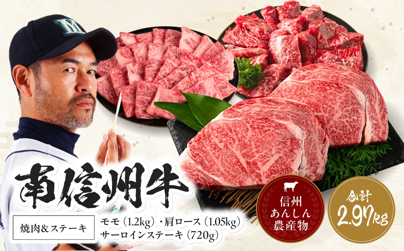 南信州牛は南信州の大自然に育まれ、上質な肉質ときめ細やかな脂に仕上がりました。 肉 牛 南信州牛 焼肉 & ステーキ セット ( サーロインステーキ360g(約180g×2枚)×2パック、モモ焼肉用400g×3パック、肩ロース焼肉用350g×3パック ) | サーロインステーキ 肩ロース ロース サーロイン モモ肉 肉 焼肉 すき焼き 牛肉 お肉 信州 南信州 送料無料 ふるさと納税 長野県 飯田市 J06