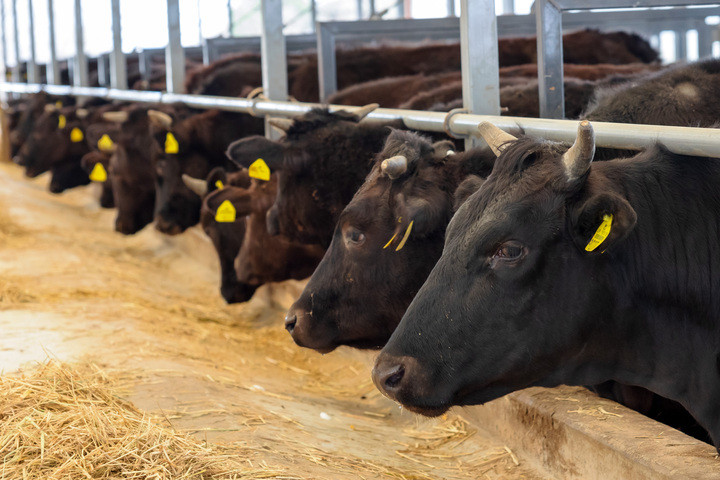 生後8~10ヵ月で導入された子牛は牧草と穀物を食べ、30~36ヵ月かけてじっくり成長します。