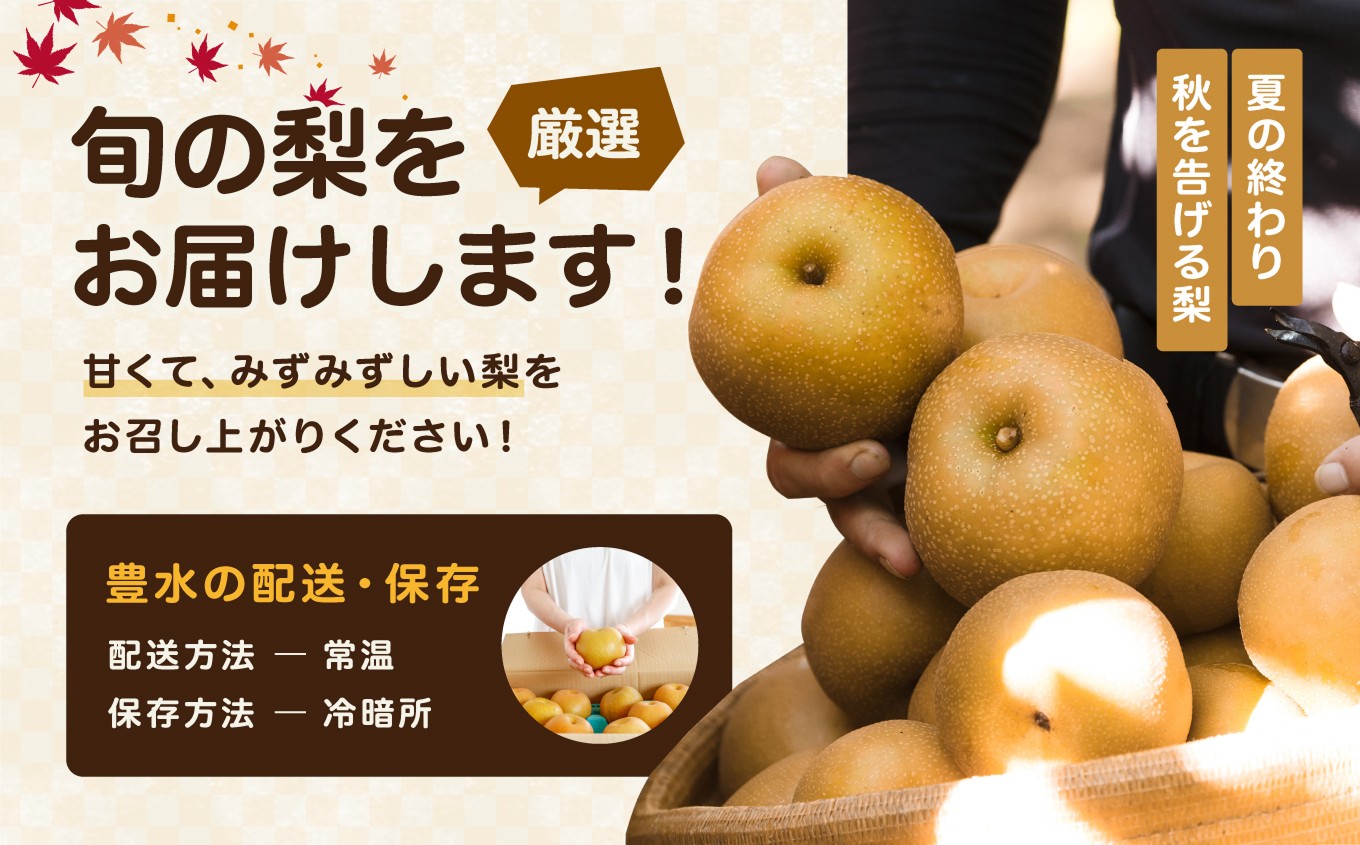夏の終わり、秋を告げる味。シャリっと瑞々しい、甘い梨をどうぞお楽しみください。