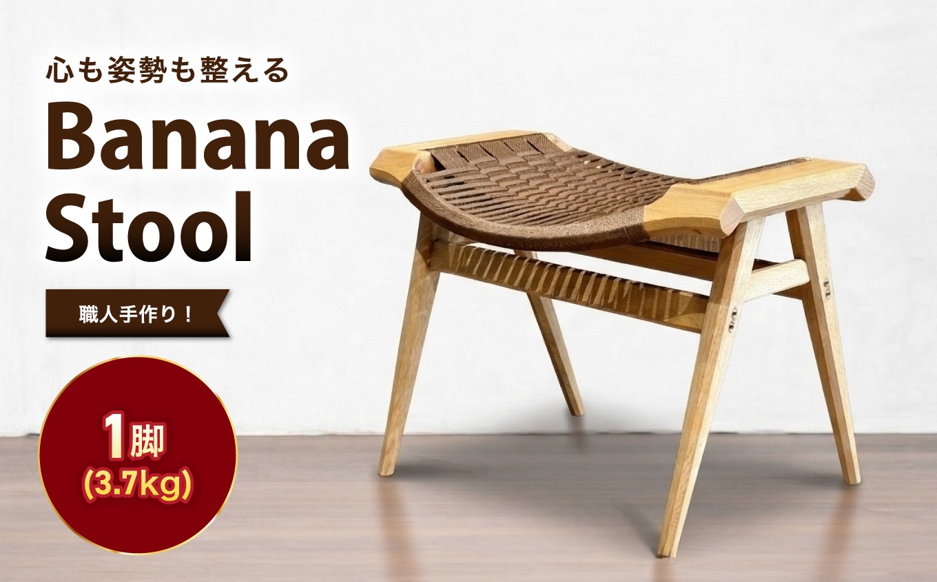 弧を描くバナナラインが、心も姿勢もやわらかく整える。 Banana stool | 椅子 いす スツール ブナ材 編み込み 手作業 くつろぎ ゆったり 心地よい リモートワーク 玄関 寝室 長野県 飯田市 信州