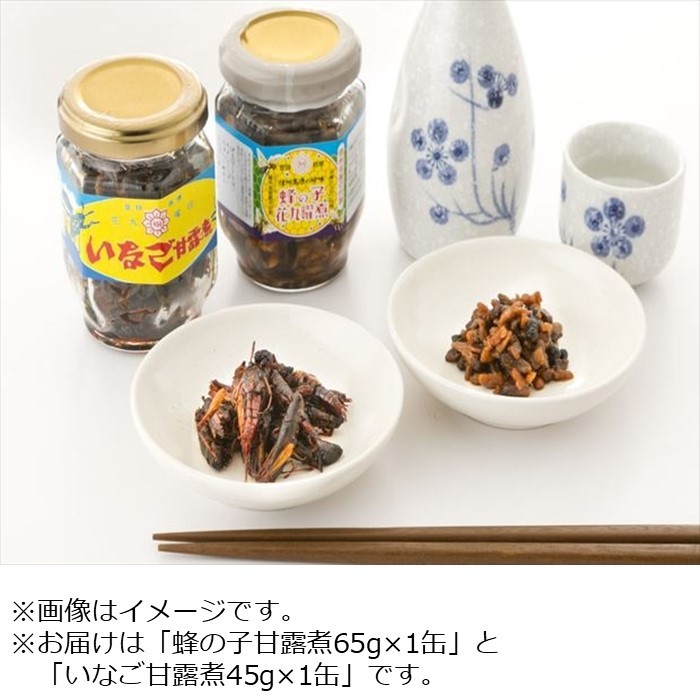 信州の伝統食を味わう、蜂の子といなごの食べ比べセット 蜂の子・いなごの食べ比べセット(蜂の子甘露煮[65g×1缶]・いなご甘露煮[45g×1缶])/ 原田商店 高級 珍味 高タンパク 滋養 健康 昆虫食 甘露煮 お土産 おみやげ お取り寄せ グルメ おすすめ おすすめ甘露煮 おすすめ缶詰 おすすめ瓶詰 信州 長野県 諏訪市 諏訪 【27-01】