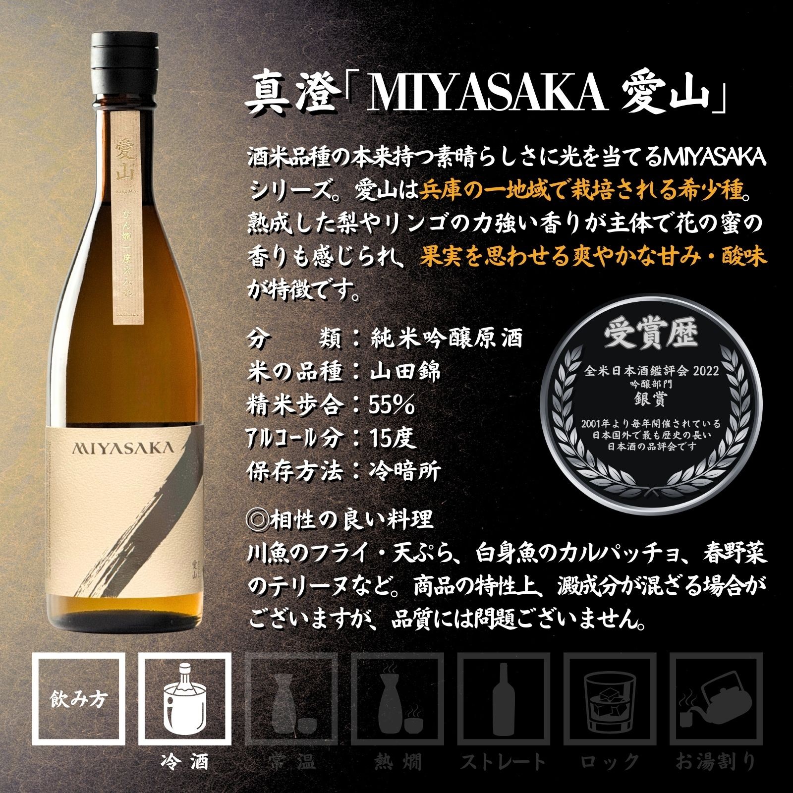 酒米品種の本来持つ素晴らしさに光を当てるMIYASAKAシリーズ。愛山は兵庫の一地域で栽培される希少種。熟成した梨やリンゴの力強い香りが主体で花の蜜の香りも感じられ、果実を思わせる爽やかな甘み・酸味が特徴です。