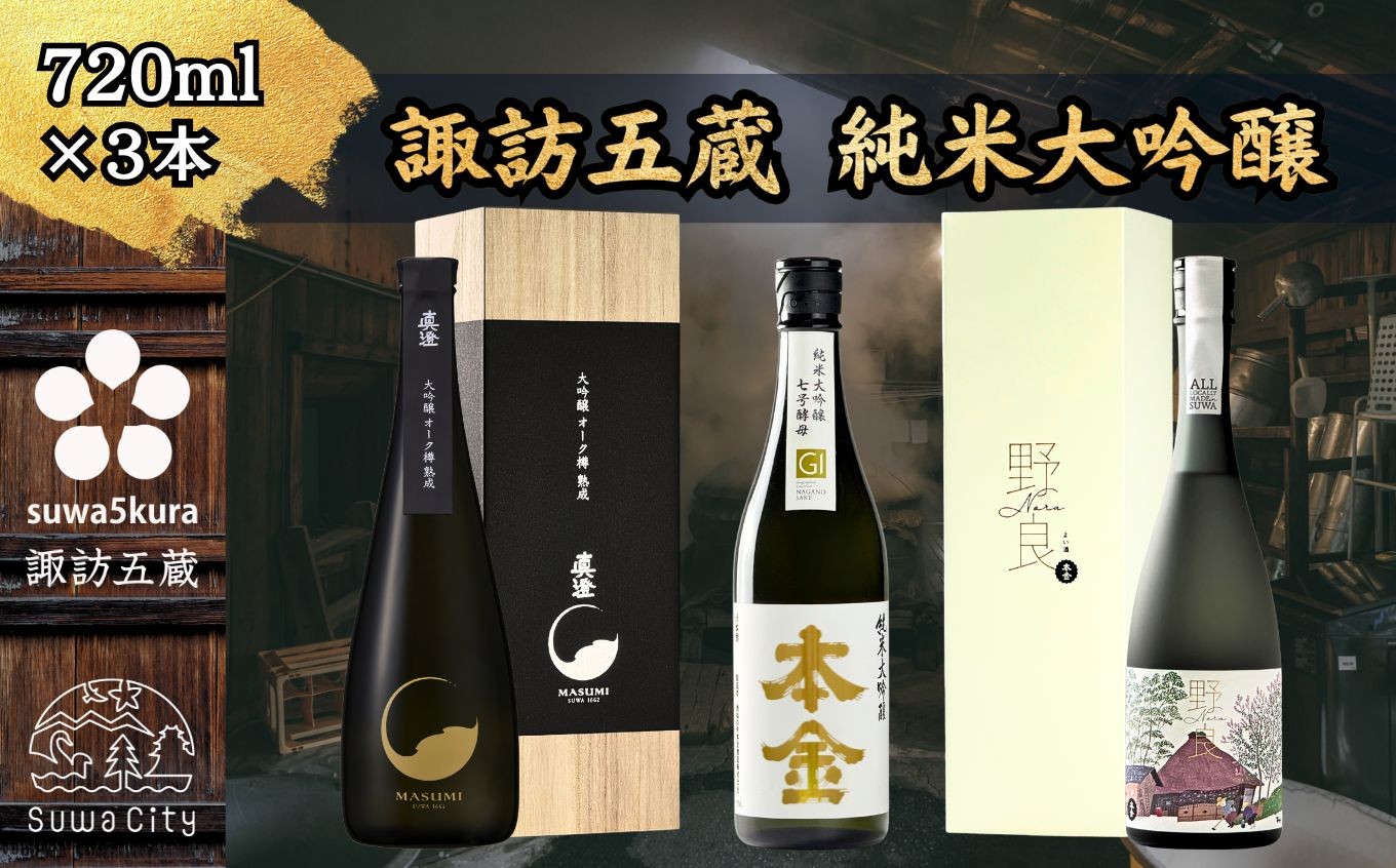 酒の街・諏訪五蔵の純米大吟醸を贅沢に飲み比べできる地酒セットです! 【諏訪五蔵】 純米大吟醸 日本酒 飲み比べ セット 720ml×3本 真澄 「夢殿 大吟醸オーク樽熟成」 本金 「純米大吟醸 七号酵母」 「純米大吟醸 野良」【信州 日本酒 純米大吟醸 酒 お酒 地酒 SAKE さけ お取り寄せ ギフト プレゼント 贈り物 贈答 お祝い】[102-20]