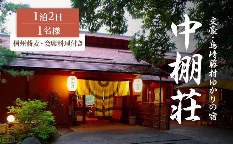 明治31年創業、文豪・島崎藤村ゆかりの宿。秋から春の初恋りんご風呂が人気。夕食時、季節の創作会席料理に信州名物の蕎麦を追加&グラスワインサービス。お部屋は、平成6年に建てられた平成館の和室8畳(トイレ・洗面付)をご用意。 有効期限:発行日より1年 ※画像はイメージです。 ※蕎麦の量は、半蕎麦でご準備いたします。 ※お食事は、夕朝食とも御食事処にて。 ※予約状況により御宿泊いただけない場合がございます。ご予約時にお問合せください。 ※ご予約は、お電話に限ります。 ※ご予約の際、ふるさと納税宿泊券をご利用とお伝えください。 ※GW・年末年始・お盆は、ご利用いただけませんのでご了承くださいませ。 事業者:株式会社中棚温泉 中棚荘