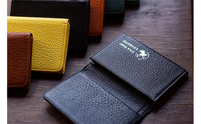 鹿革本来の自然シボ(皮膚全体に広がる凹凸のある模様)の凸部分に色を乗せ、立体感のある表情を楽しめる名刺入れに仕上がりました。裏地にも鹿革を使用した、こだわりの逸品です。