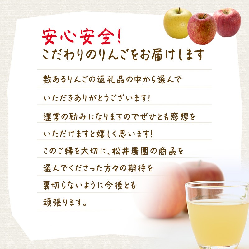 松井農園のりんごは栽培期間中低農薬・有機栽培。安心してお召し上がりください。