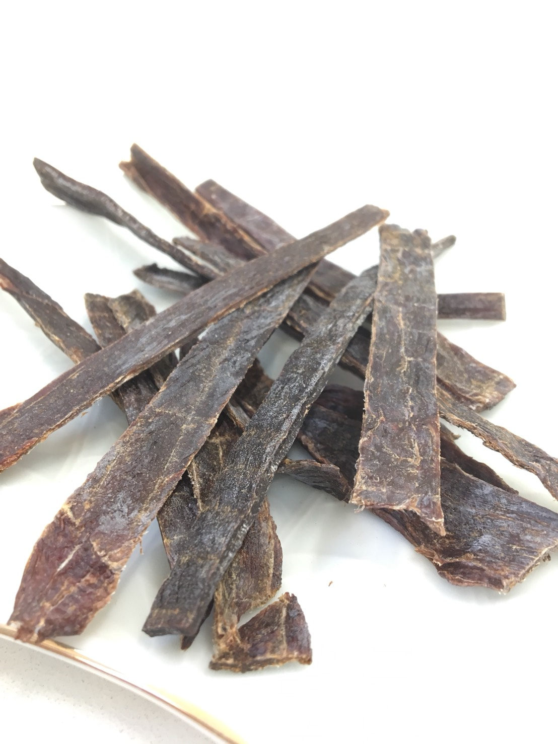 鹿肉ジャーキーは、ご褒美おやつでも、手で簡単に裂けるので、いつものご飯に混ぜても簡単手作りごはんになります。