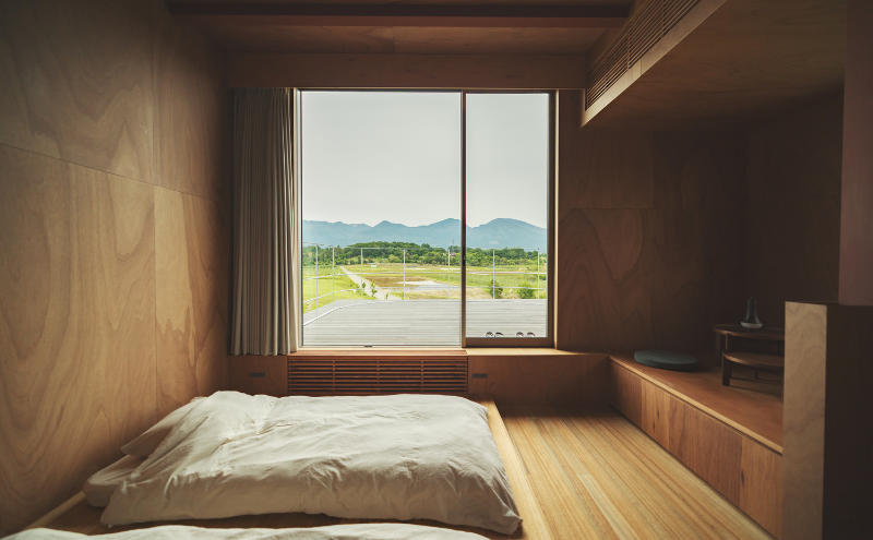 醸造家の家をイメージした建物は、1階が薪火ダイニング、2階が1日1組限定のゲストルーム。