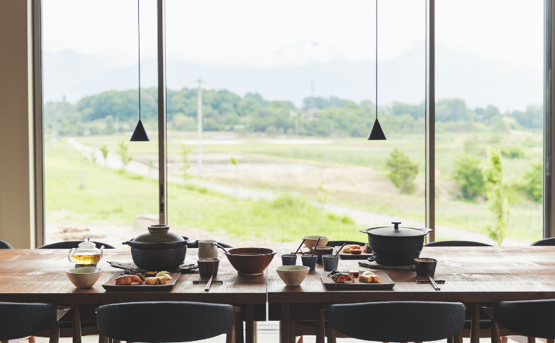 滞在中は、ブドウ畑や竹林を巡る案内や、季節の手しごと体験もご用意。夜は遠くの街明かりと星空だけの世界。翌朝は、郷土料理を薪火で仕立てた和朝食を、朝日が差し込む畑を眺めながらゆっくりと。火と食、自然と暮らしが緩やかにつながる——御牧ヶ原ならではの滞在をお届けします。