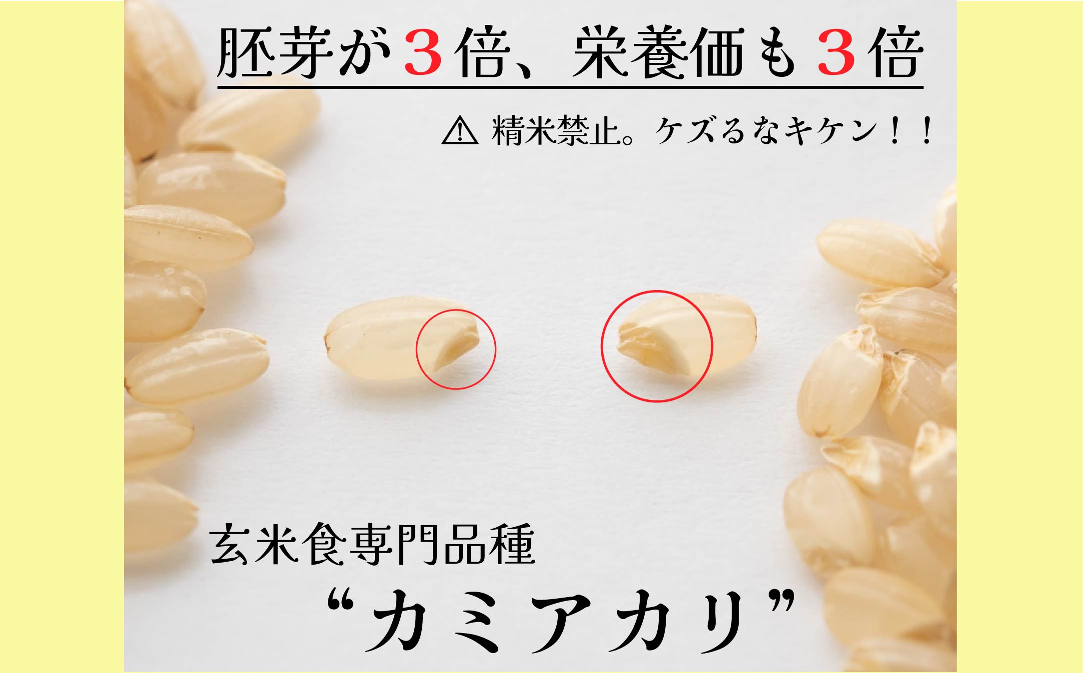 カミアカリとは日本で7農家ほどだけにしか栽培が許されていない、幻の「玄米食に特化した巨大胚芽米」です。