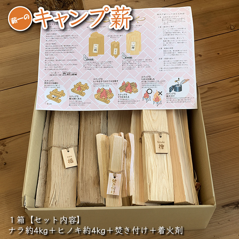 キャンプ薪 (ナラ約4kg、ヒノキ約4kg、焚き付け5本) 30cm・…