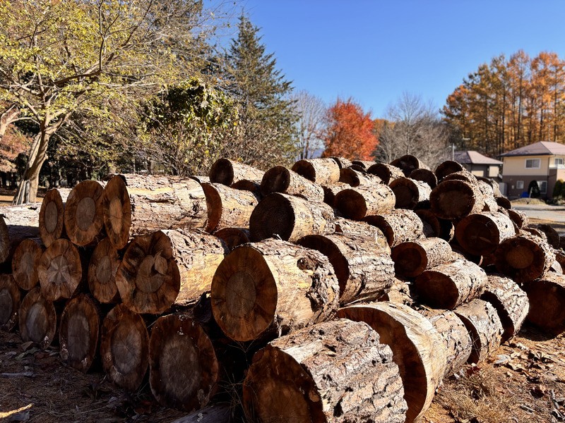 太めに割られた広葉樹の薪は火持ちが良く、長時間の燃焼に適しています。