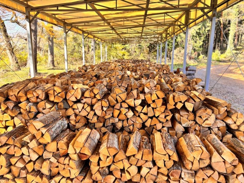 太めに割られた広葉樹の薪は火持ちが良く、長時間の燃焼に適しています。