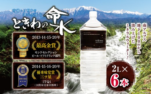 南アルプス 地下100mから汲み上げたミネラルウォーター! 水 ミネラルウォーター 市場の目利きが選ぶ名産品『ときわの命水』 2L×6本 | 飲料 水 ミネラルウォーター 南アルプス 地下100m 汲み上げ モンドセレクション iTQi 受賞 伊那市 長野県【011-a5】