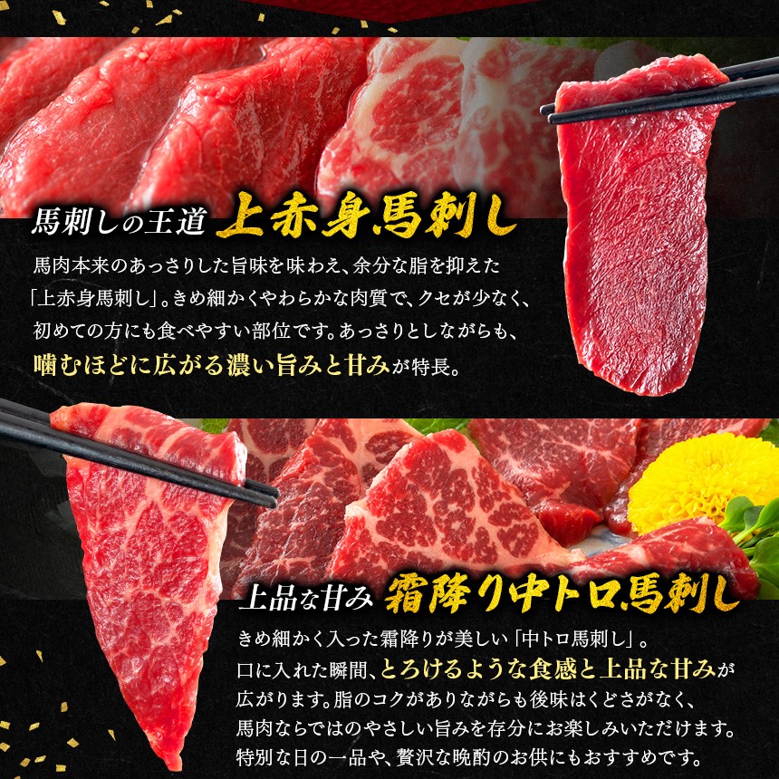 NEW 馬刺し 3種 食べ比べ セット 約600g ( 訳あり 上赤身 ・ 霜降…