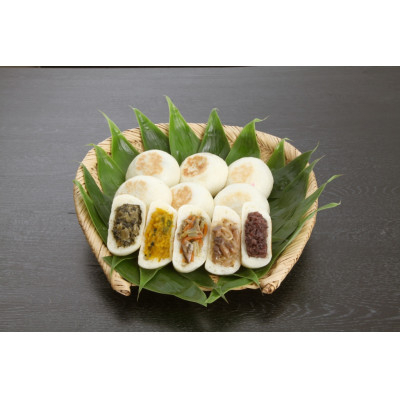 長野県産の小麦粉を使用し、中身の餡は全て国産品で仕上げたやわらかもちもちのおやきです。信州を代表するお漬物の野沢菜をはじめ、きのこ野菜、野菜ミックス、あずき、かぼちゃの5種類を4個ずつ詰め合わせました。冷めても固くならずそのもちもちの食感が食べ切るまで味わえます。信州のお土産として人気の高い郷土食を是非お召し上がりください。