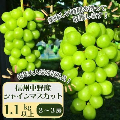<先行受付>信州中野産 シャインマスカット 1.1kg以上(2~3房)【1494233】