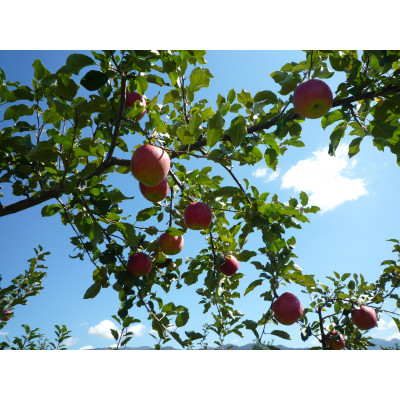 「ふじ」と「つがる」から生まれた、甘みが強く、果汁があふれ、香りがよいシャキッ!としたりんごです。樹上で完熟したりんごをお届けします。