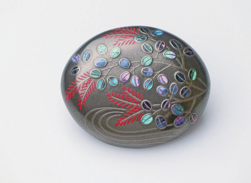 伝統の技光る「いいやま蒔絵ブローチ・銀萩」(Ba-004)