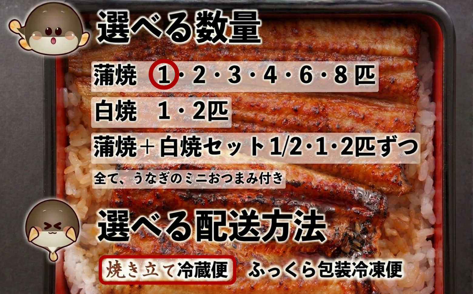 | 容量 | ・【冷蔵】うなぎ蒲焼 1人前 (うなぎ1尾150g以上、蒲焼用タレ付) ・うなぎのミニおつまみ2個付 (カブト煮、ヒレ煮、ホネ揚げの中から2品を当店でセレクトします) |