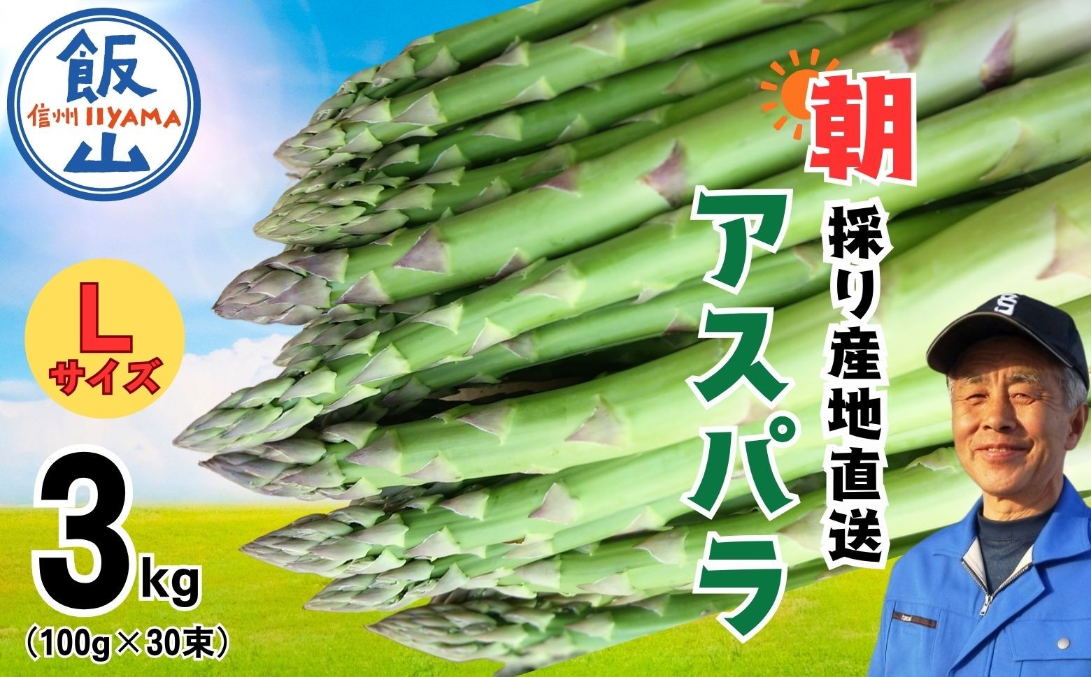 豪雪地で育ったアスパラは一味違う!甘くてやわらかい露地栽培アスパラ 【2026年発送 先行予約】朝採り!露地栽培 アスパラガス L級サイズ 3kg (約90〜100本)《出荷時期:2026年5月上旬〜》(Bu-003) | 信州 飯山 アスパラ 春アスパラ 露地栽培 朝採れ