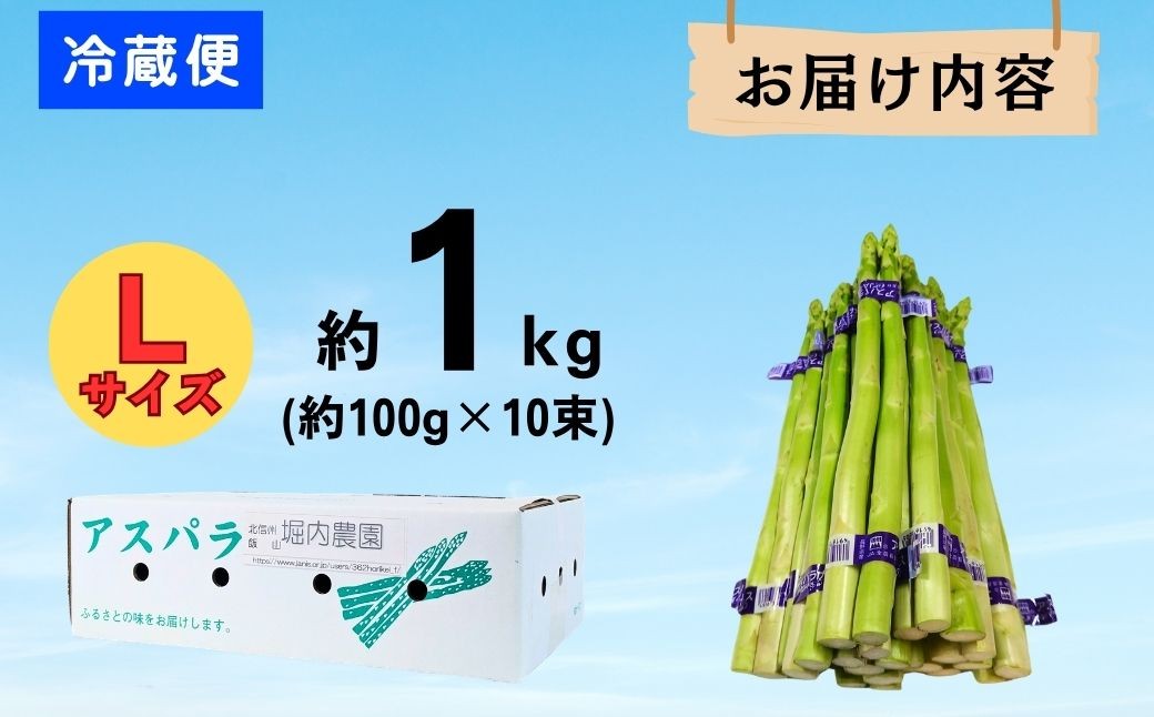 豪雪地で育ったアスパラは一味違う!甘くてやわらかい露地栽培アスパラ 【2026年発送 先行予約】朝採り!露地栽培 アスパラガス L級サイズ 1kg (約30〜40本)《出荷時期:2026年5月上旬〜》(Bu-001) | 信州 飯山 アスパラ 春アスパラ 露地栽培 朝採れ