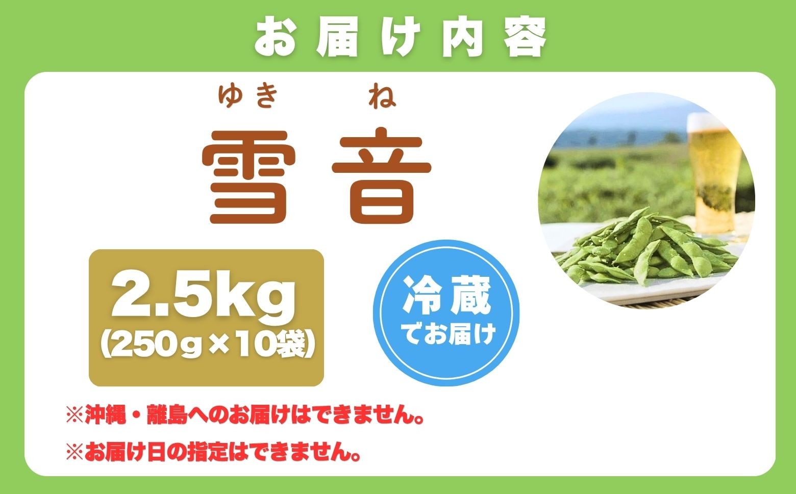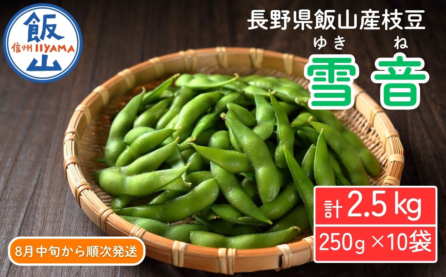 甘みが強く、大粒で旨味のある風味が特徴の自慢の枝豆 【先行予約】枝豆「雪音(ゆきね)」2.5kg (250g × 10袋)《2026年8月下旬より発送予定》信州飯山 木島産|長野県 飯山市 えだまめ おつまみ 夏 定番 数量限定 (Cg-001)