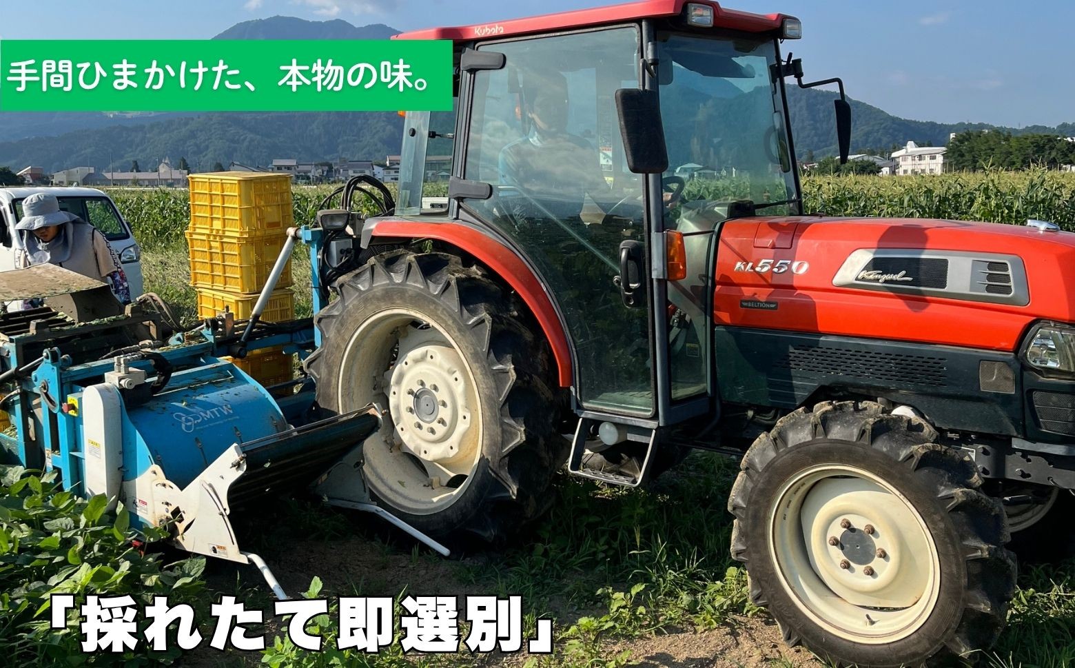 激しい寒暖差の影響により非常に甘みが強く、大粒で旨味のある風味が特徴です。その日に採れた枝豆をすぐに洗浄し、選別してからお届けします。