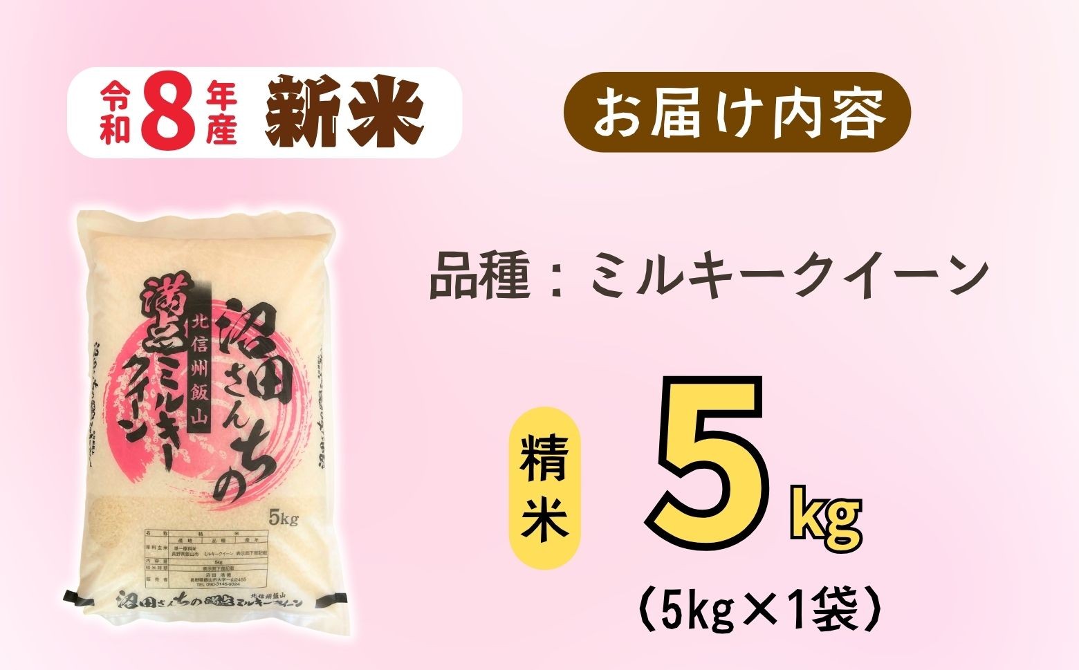お米に命をかけた沼田さんの自信作!ミルキークイーン 【先行予約】《 令和8年産 新米 》 沼田さんちの満点 ミルキークイーン 精米 5kg 《 2026年11月より出荷 》 (Bx-001) | お米 米 コメ ご飯 ごはん 白米 みるきー ミルキー もちもち 美味しい オススメ 長野県 飯山市