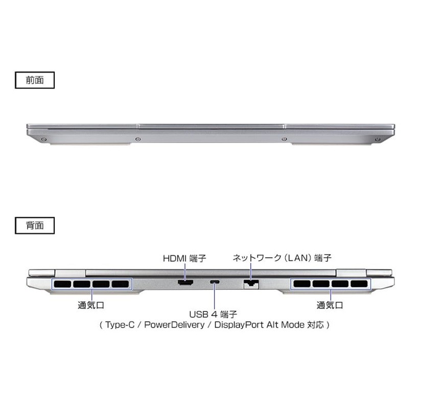 | 容量 | 型番:B5A7A01SRAECW101DEC-IIYAMA ・OS: Windows 11 Home 64ビット(Office搭載なし) ・CPU: AMD Ryzen 7 8845HS プロセッサ ( 8コア / 16スレッド / 3.8GHz / 最大5.1GHz / L3キャッシュ16MB ) ・グラフィックス:AMD Radeon 780M ・メモリ:16GB (8GB×2 / デュアルチャネル) ・M.2 SSD:500GB (NVMe) ・パネル:15.3型ワイド液晶パネル ( 2560×1600 / LEDバックライト / ノングレア ) ・カードリーダー:UHS-I対応 カードリーダー ( SD / SDHC / SDXC 対応 ) ・ディスプレイ:3 (背面 HDMI×1、USB4 Type-C×1、左側面 USB3.1 Type-C×1) ・USB2.0:1 (左側面 Type-A×1) ・USB3.0 (5Gbps):2 (右側面 Type-A×2) ・USB3.1 (10Gbps):1 (左側面 Type-C×1 ※USB PD入力に対応 ※画面出力に対応) ・USB4(40Gbps):1 (背面 Type-C×1 ※USB PD入力に対応 ※画面出力に対応) ・ネットワークLAN:1 (背面 1000BASE-T/100BASE-TX/10BASE-T対応(RJ-45)×1) ・無線LAN:Wi-Fi 6E( 最大2.4Gbps )対応 IEEE 802.11 ax/ac/a/b/g/n準拠 + Bluetooth 5内蔵 サウンド:左側面 (ヘッドホン出力・ヘッドセット/4極(CTIA準拠)×1) ・WEBカメラ:前面:200万画素( Windows Hello 顔認証対応 / プライバシーシャッター付き ) ・キーボード:日本語キーボード (105キー / キーピッチ約18.75mm / キーストローク約1.4mm / ホワイトLED / 点字用6点入力対応(パーキンス式) / JIS配列) ・スピーカー:ステレオ スピーカー(内蔵) ・マイク:デュアルアレイマイク(内蔵) ・ACアダプター:100W USB PD 充電器 ・付属品:マニュアル類、保証書、電源コード、USB PD 充電器 |