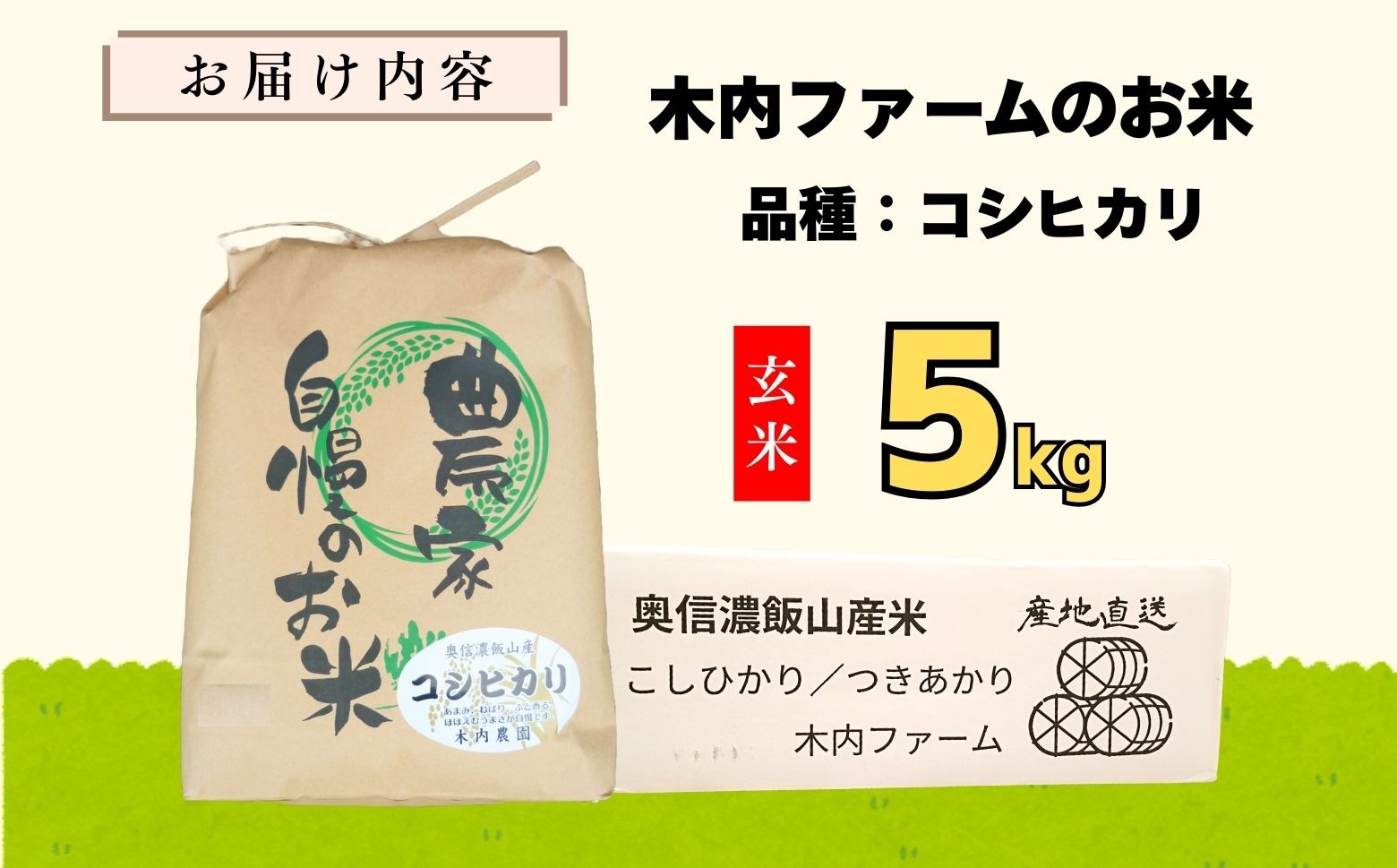 豪雪の地で育まれた農家自慢のコシヒカリです! <令和7年産 新米> コシヒカリ 玄米 5㎏ 奥信濃飯山~木内ファームのお米~ (7-10B) お米 コメ 玄米 ご飯 長野県 信州 飯山市 新米 令和7年 こしひかり 産地直送 農家直送