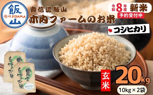 NEW 【先行予約】《 令和8年産 新米 》 こしひかり玄米 20kg 奥信…